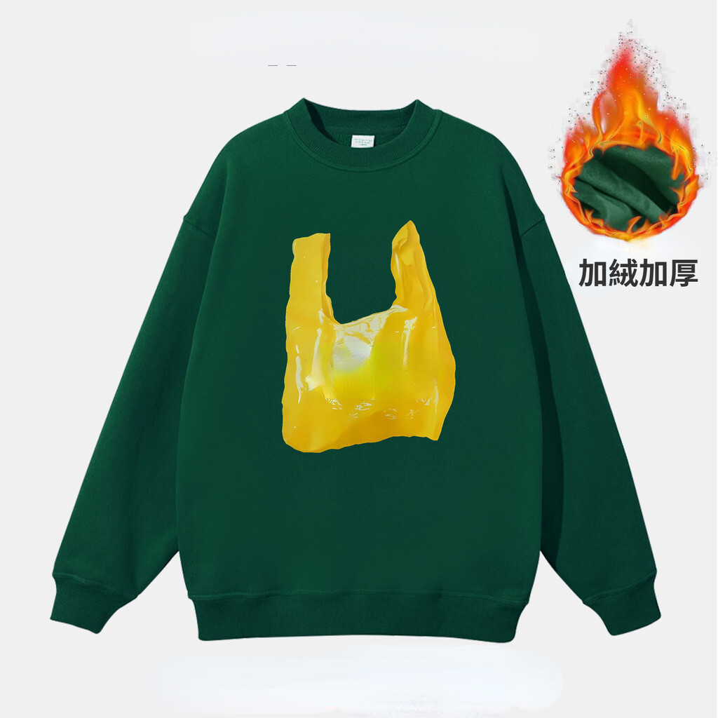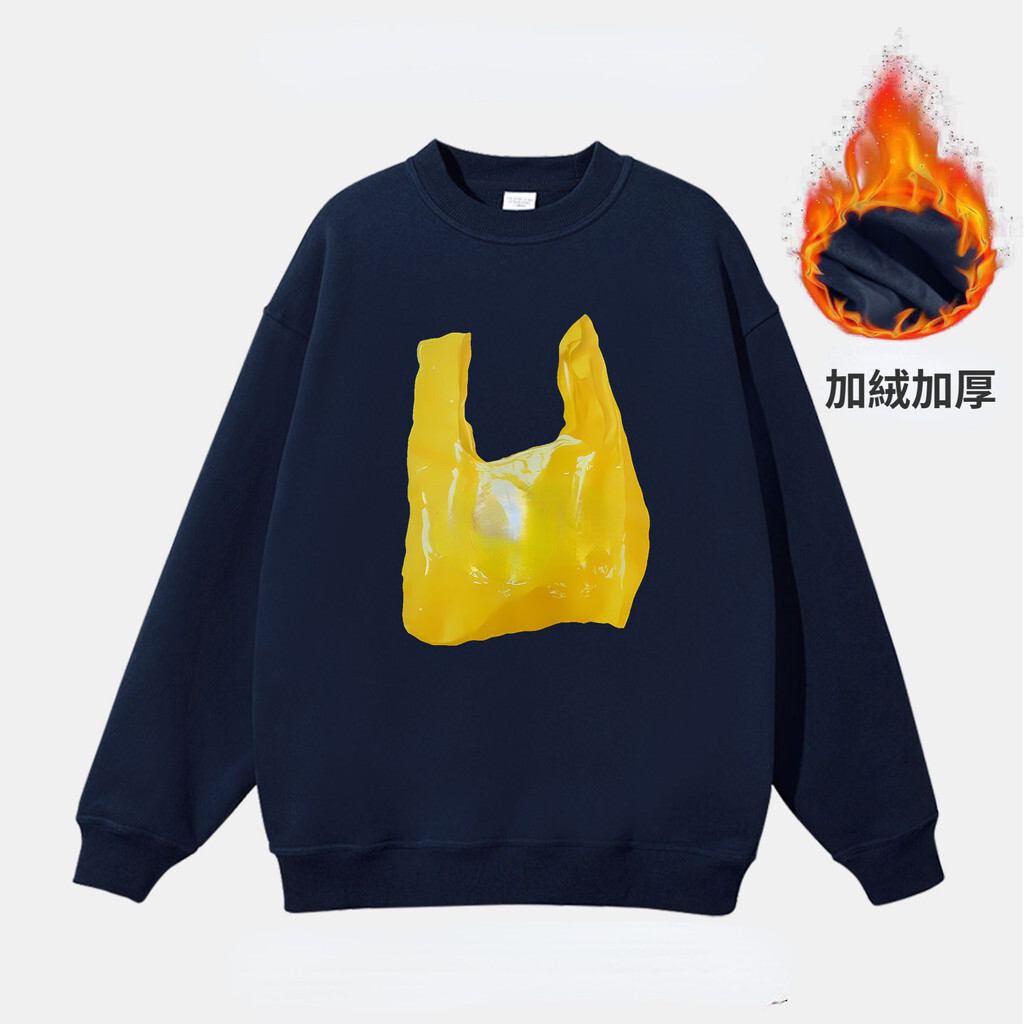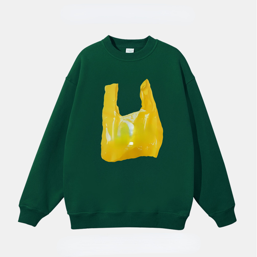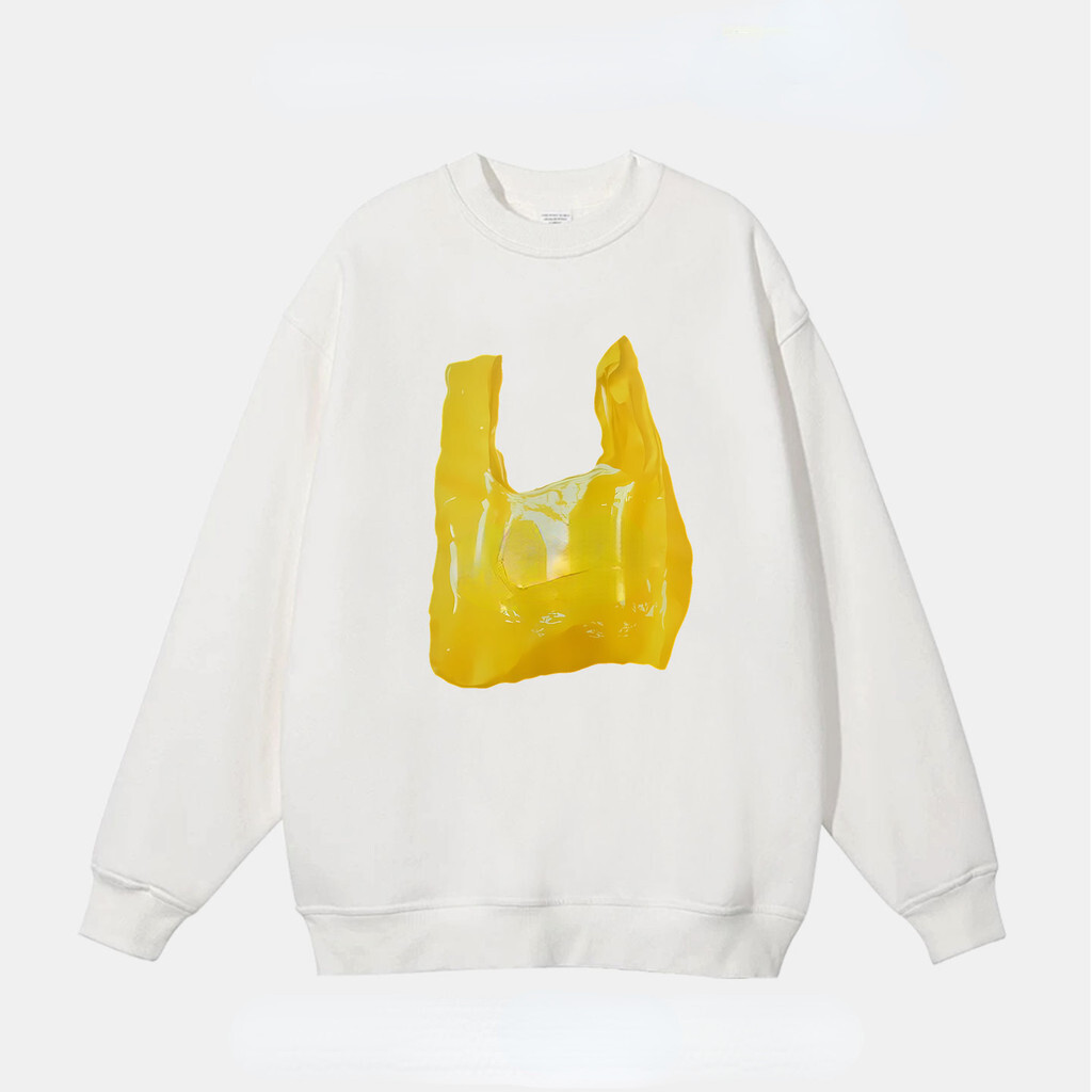 ‧ 話題性印花設計:將常見塑料袋轉化為特色印花,設計風格可能偏向幽默、潮牌或帶有環保議題暗示,極具辨識度。