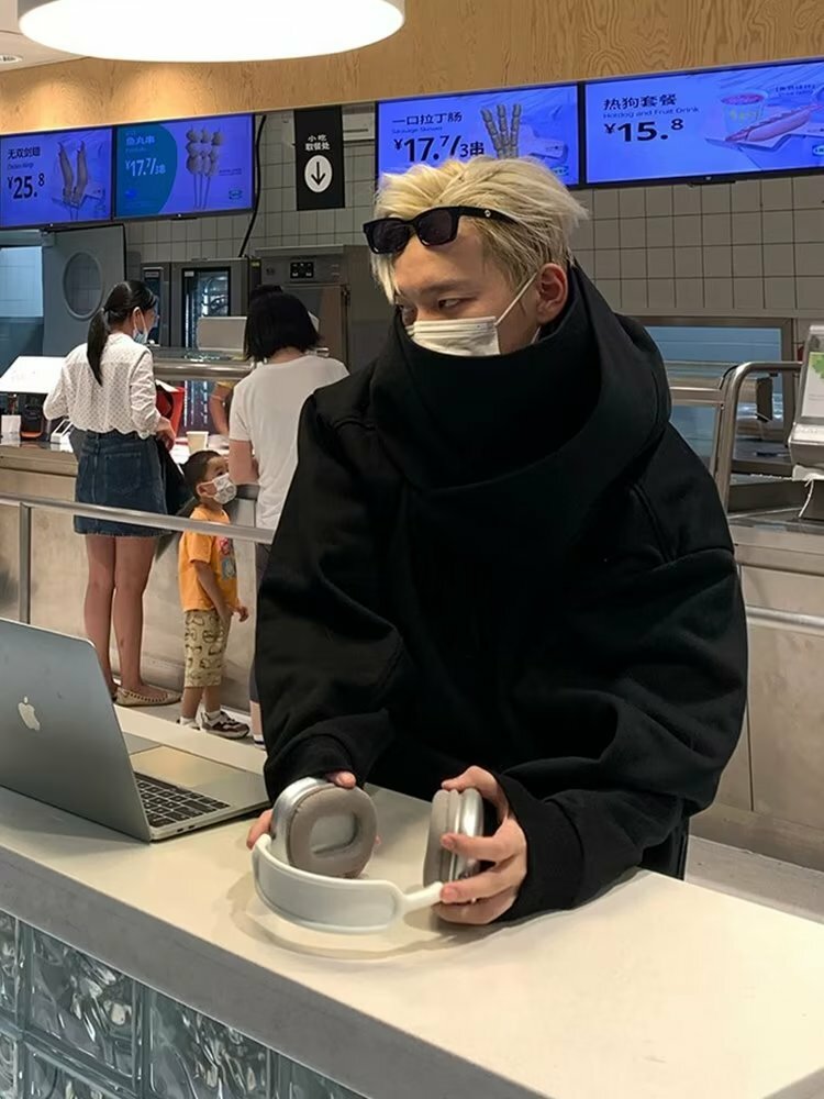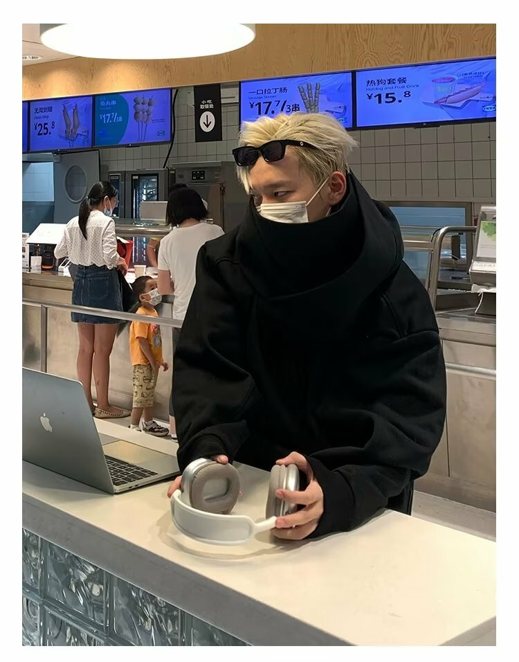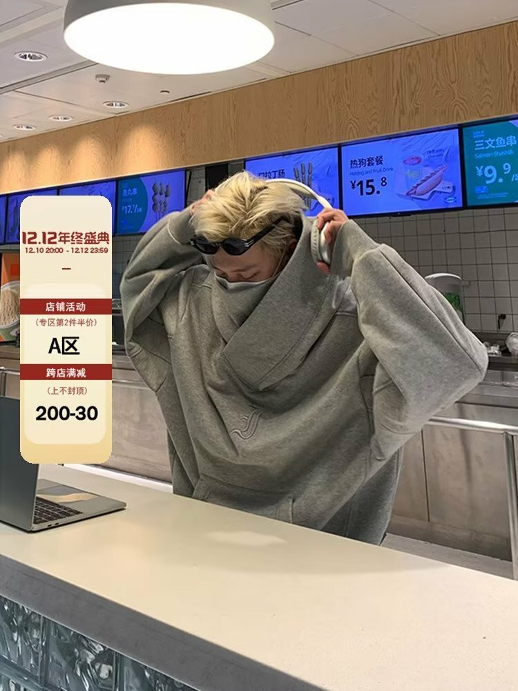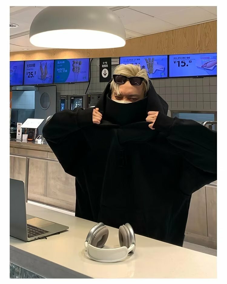 美式高領連帽帽T