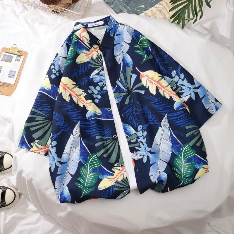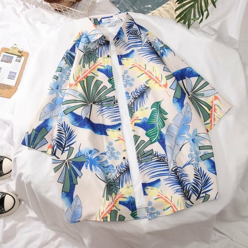 樹葉撞色夏日日系休閒短袖襯衫