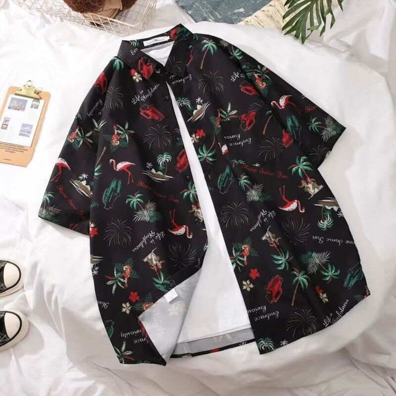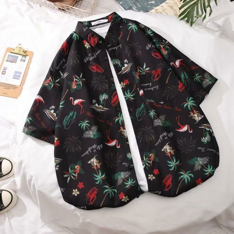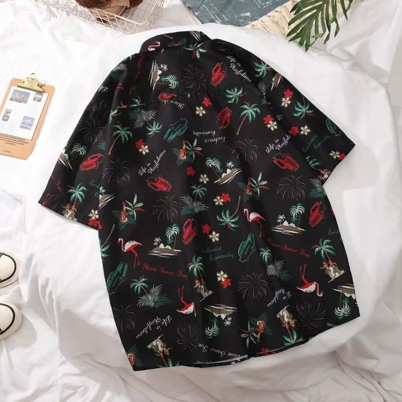 沙灘椰樹塗鴉夏日休閑度假風襯衫