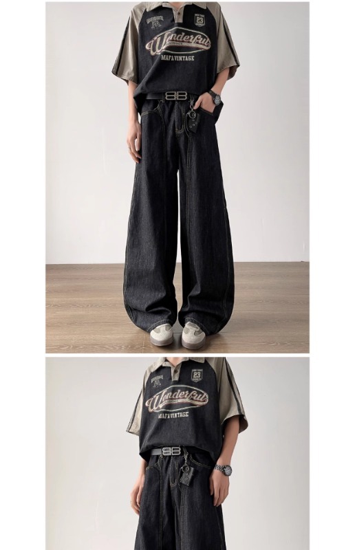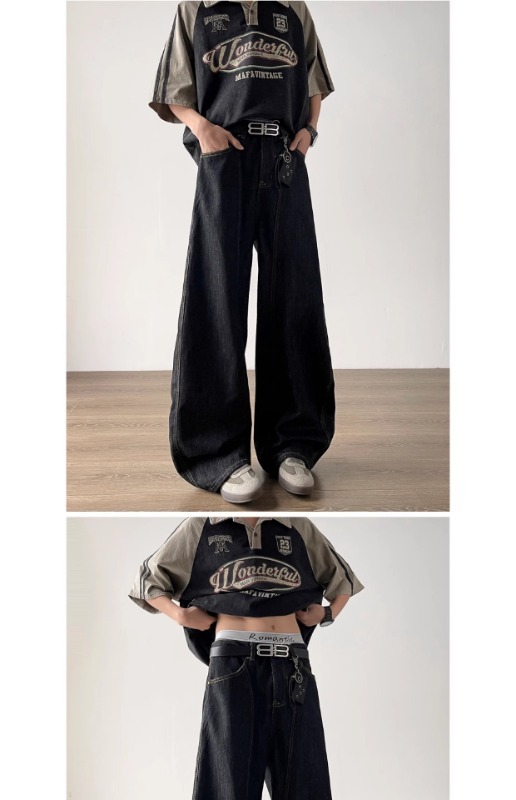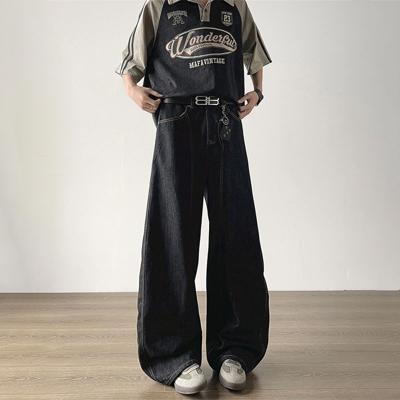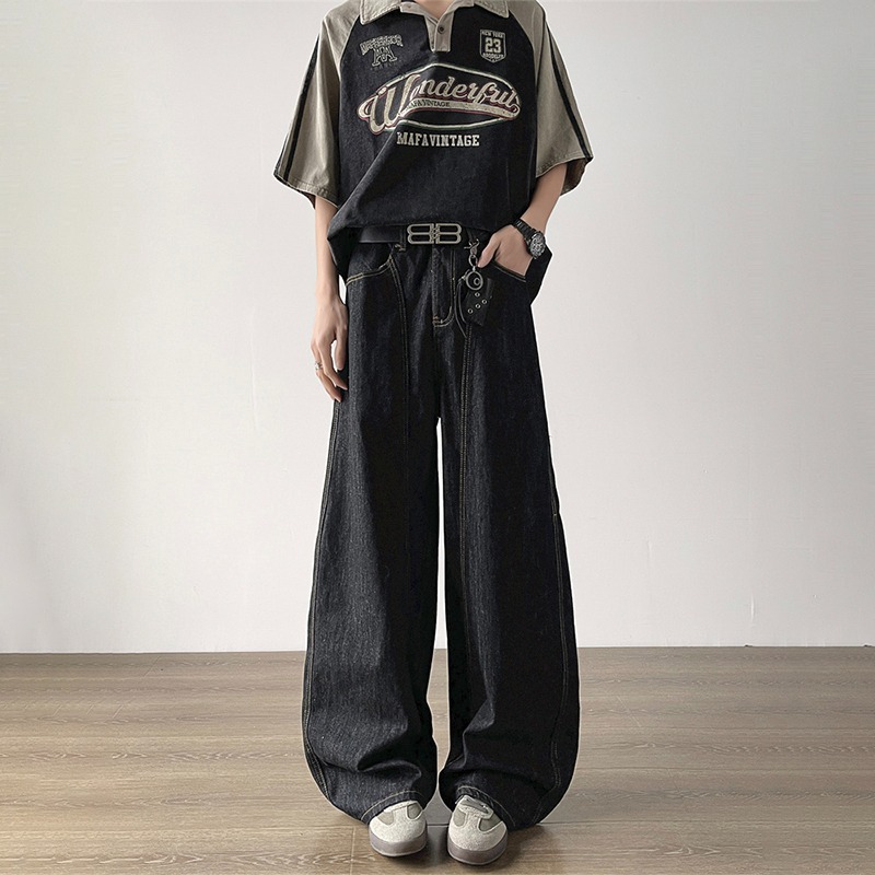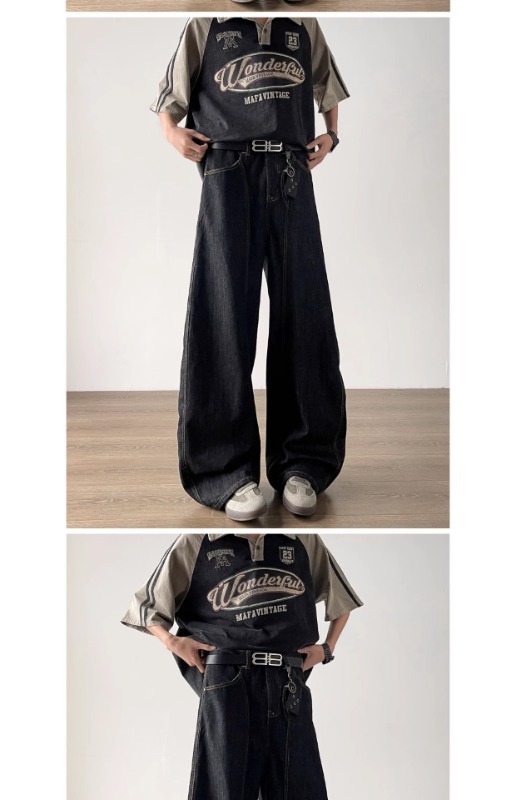 簡約丹寧藍色彎刀牛仔褲