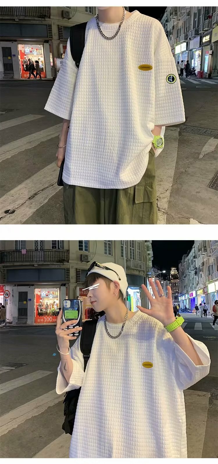 華夫格寬鬆五分袖T恤
