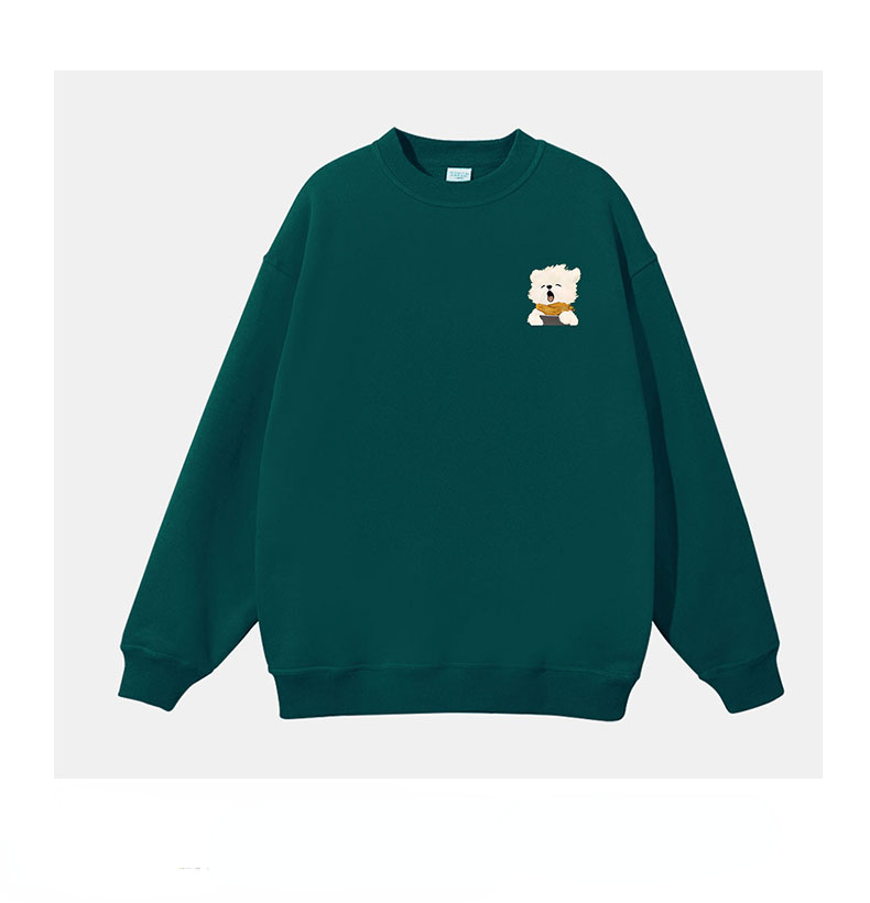 採用高克重純棉面料,手感厚實挺括,質感優越。胸口印有精緻可愛的小白狗圖案,設計俏皮吸睛。經典大學T版型,穿著舒適休閒,打造輕鬆又有重點的日常造型。