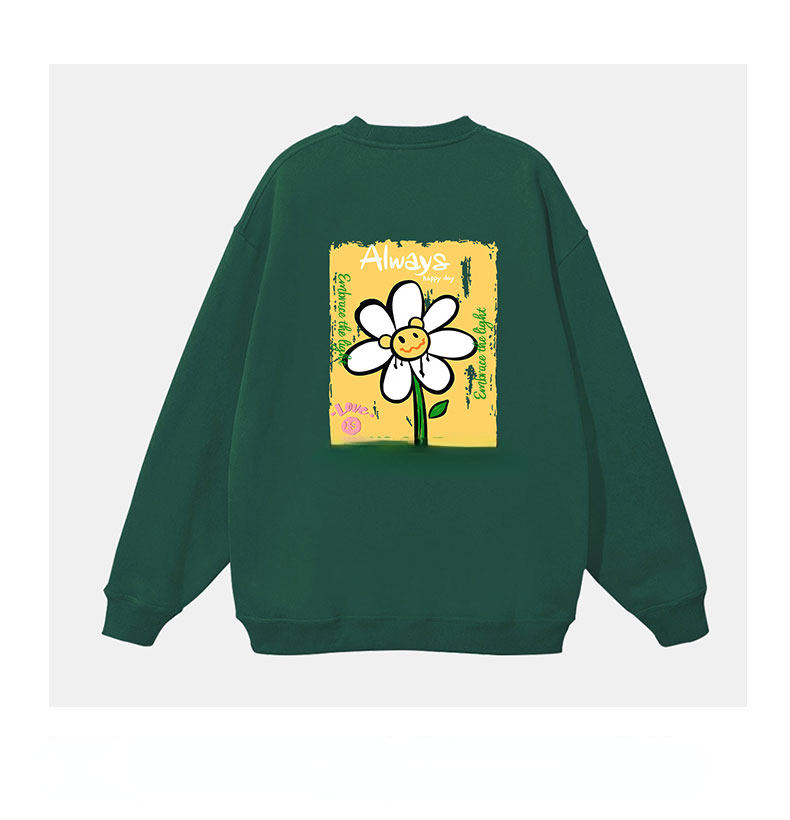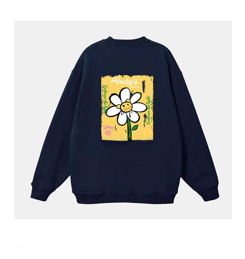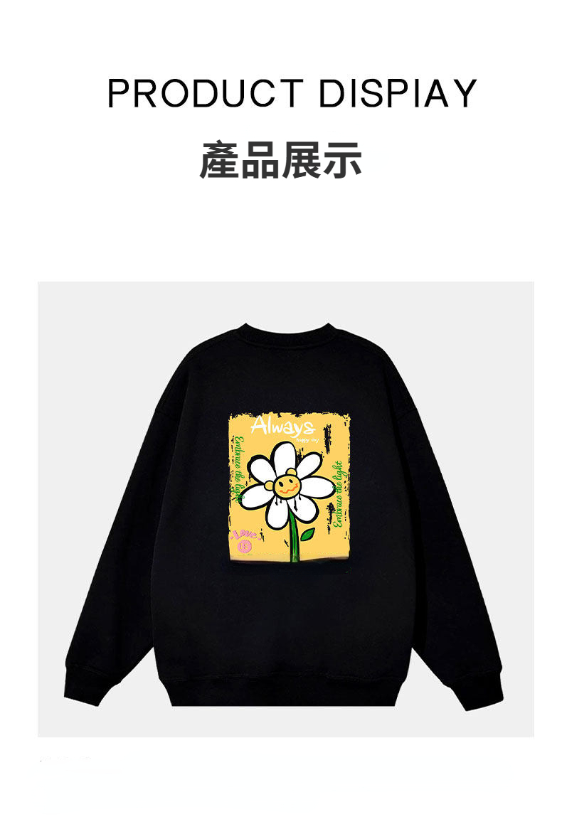 重磅純棉素色大學T,簡約百搭基礎款,精選高克重純棉面料,柔軟厚實、耐穿不易變形。素色底搭配精緻小巧笑菊印花,低調點綴細節,打造日常休閒或層次穿搭皆宜。