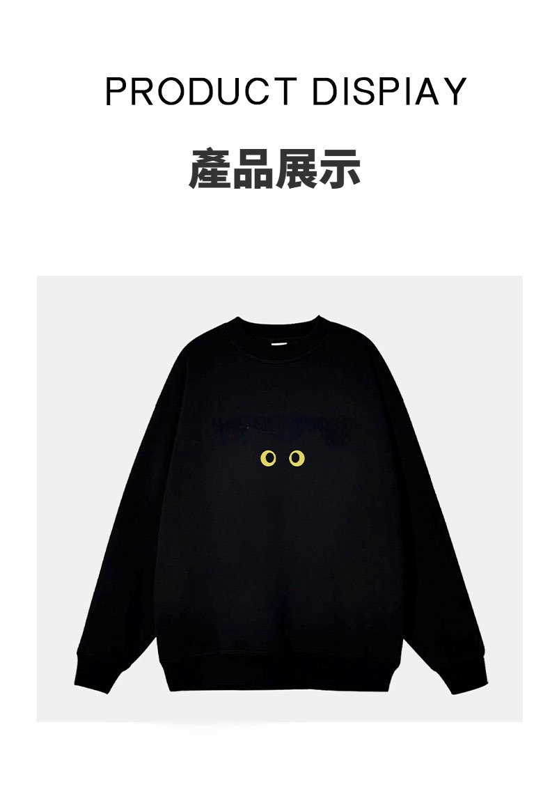 採用高克重純棉面料,手感厚實柔軟,貓眼印花設計吸睛有型,日常百搭不易撞衫。oversize剪裁,單穿或層次搭配都適合。